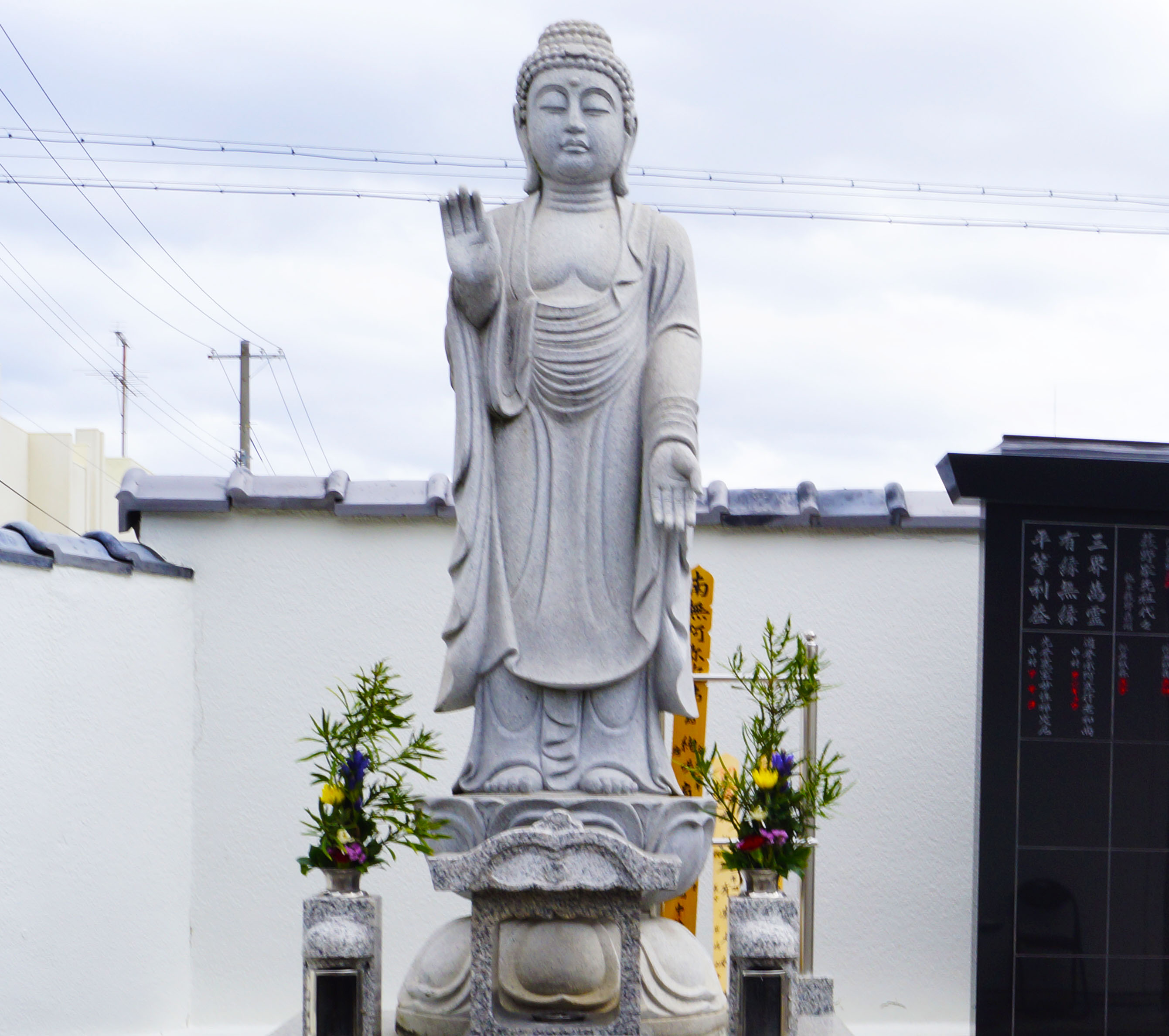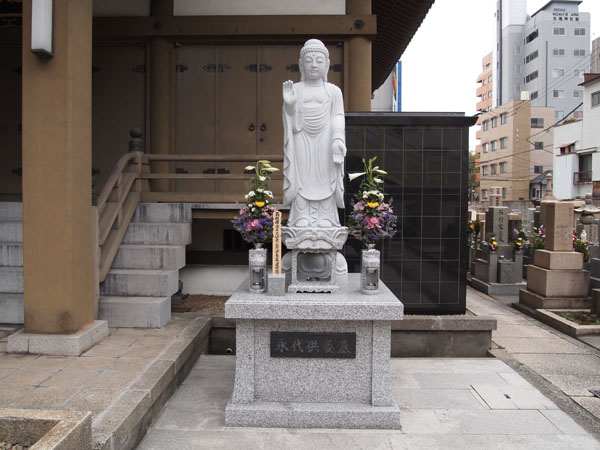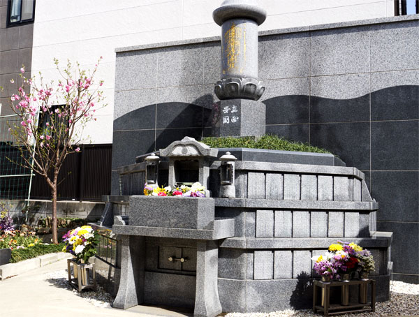 境内にある個別永代供養塔。朝夕の勤行時に毎日ご回向、春・秋のお彼岸には特別供養法要を厳修し永久にご回向供養致します。