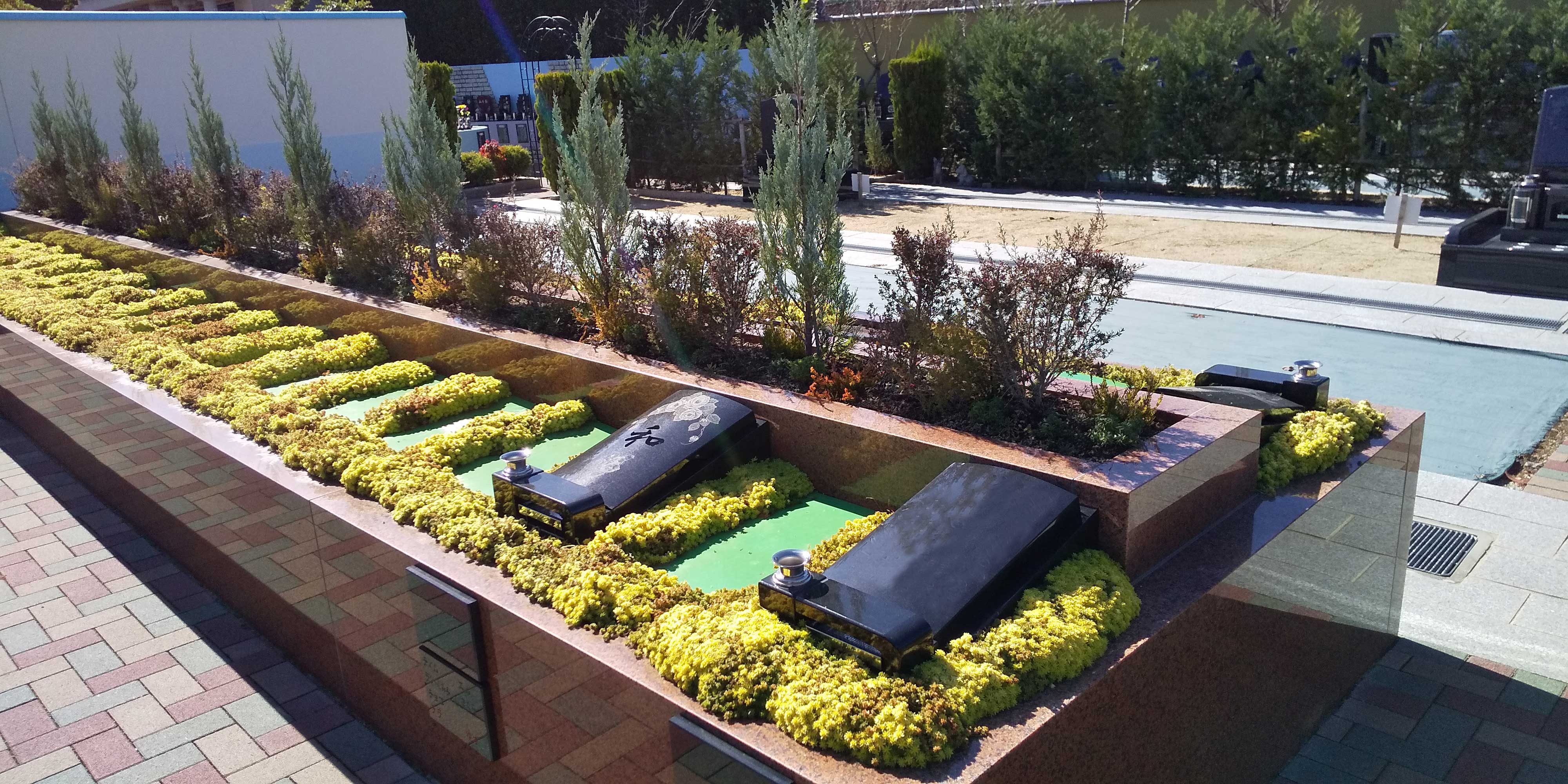一般的な樹木葬とは異なり合祀されない樹木葬となっています。それぞれ墓石となるモニュメントの周囲に囲まれた花々が鮮やかな景色となり季節を彩ります。